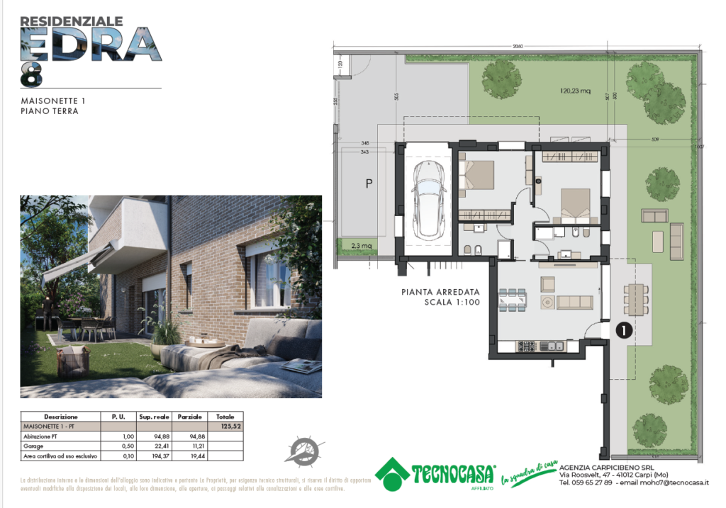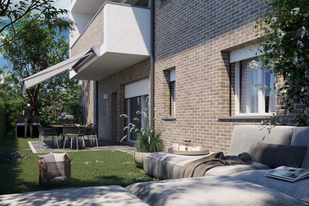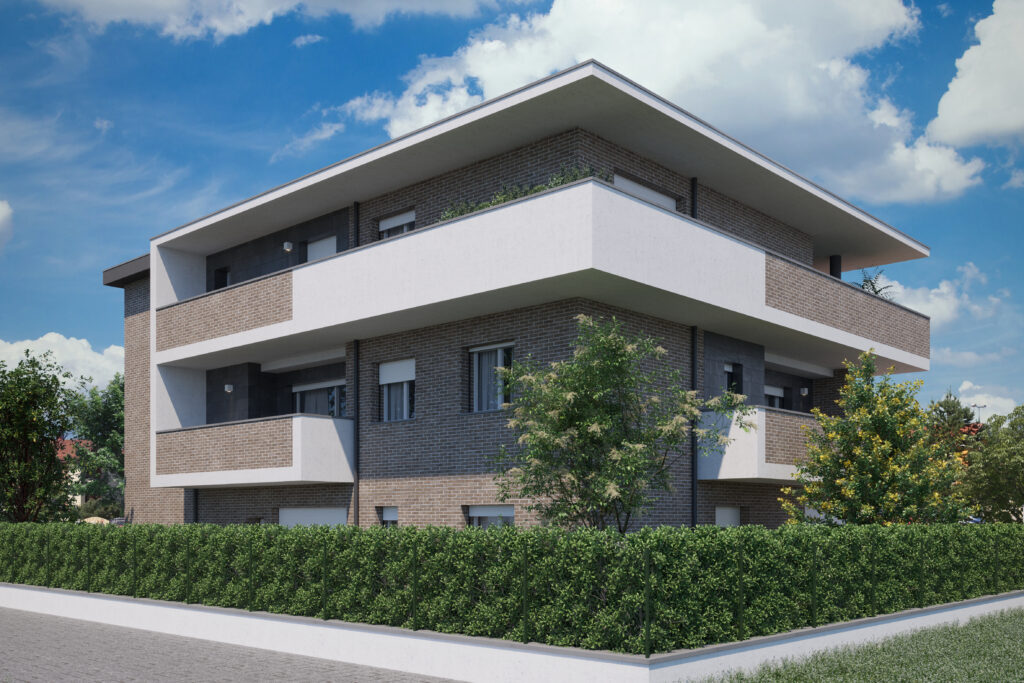 Palazzina di ultima generazione nel parco di Cibeno: tecnologia moderna, risparmio energetico e tranquillità nel verde.